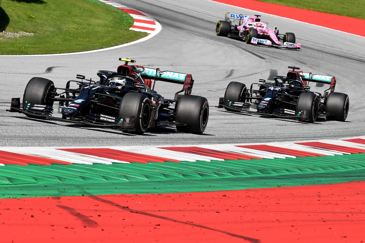 Valtteri Bottas won the race at the Red Bull Ring for Mercedes but he and his team mate Lewis Hamilton, the six-times Formula One world champion, were told to avoid the kerbs due to the risk of vibration damage.