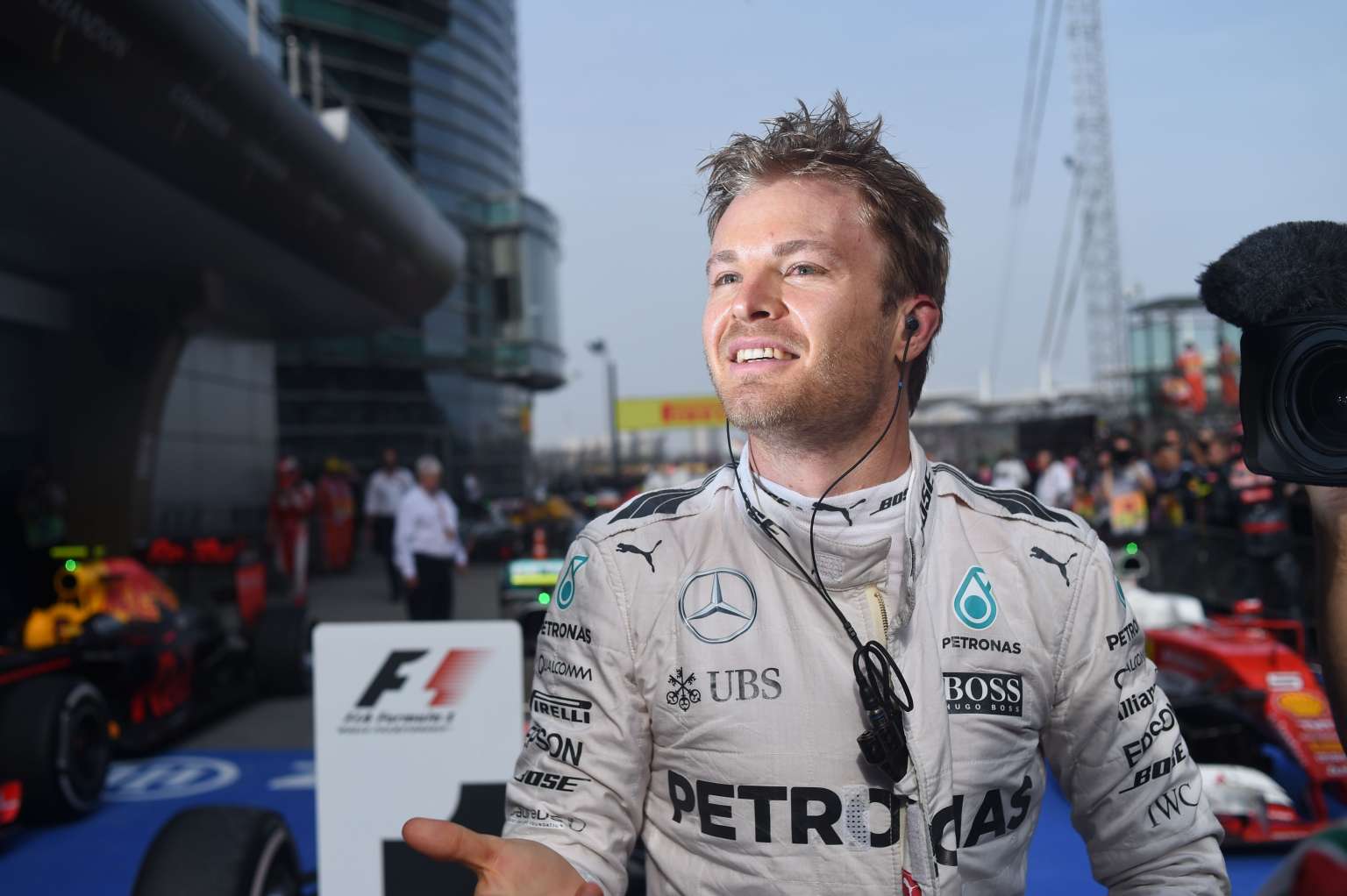 Nico Rosberg poses for photos after winning the Formula One Chinese Grand Prix in Shanghai on April 17, 2016.