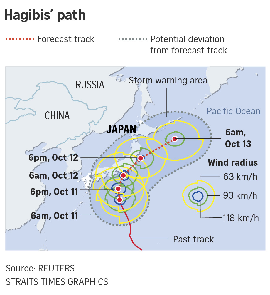 Typhoon Hagibis, categorised as a "super-typhoon", is predicted to be one of the most violent to hit the region in recent years and is expected to strike the Tokyo area this weekend.