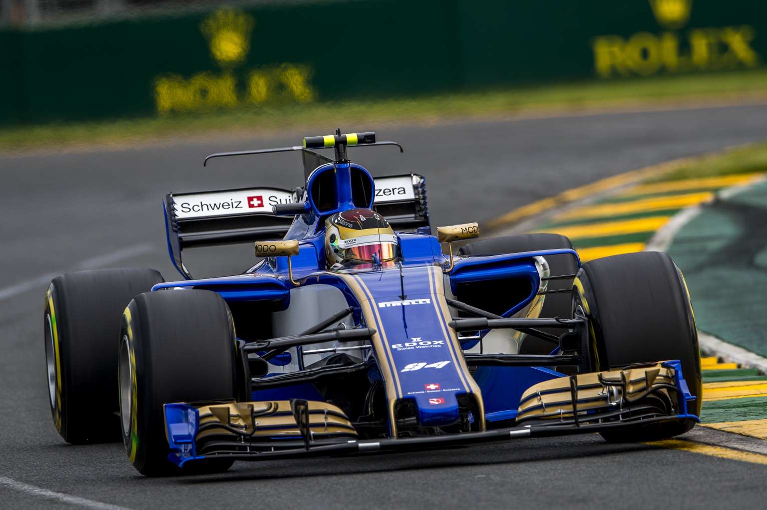 German Formula One driver Pascal Wehrlein of Sauber F1 Team steers his car during the second practice session at the Albert Park circuit in Melbourne, Australia on March 24, 2017.