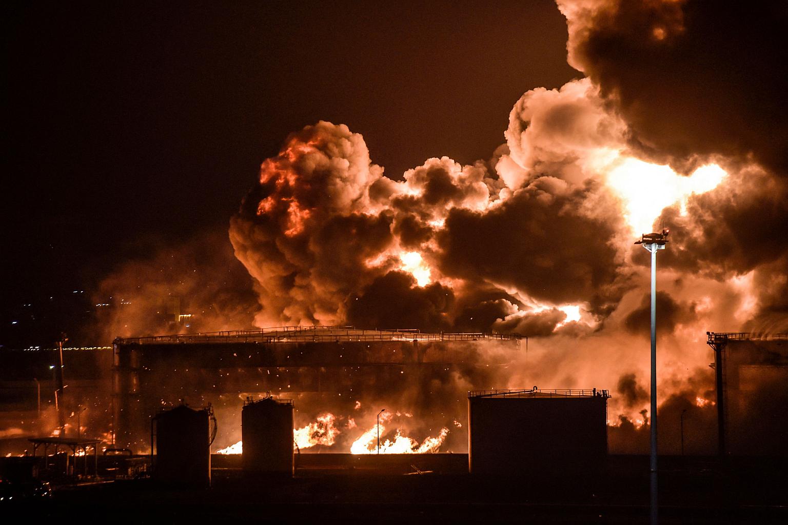 Yemen's Iran-backed Houthis said they launched attacks on Saudi energy facilities and the Saudi-led coalition said state-owned oil giant Aramco's petroleum products distribution station was hit, causing a fire in two tanks but no casualties.