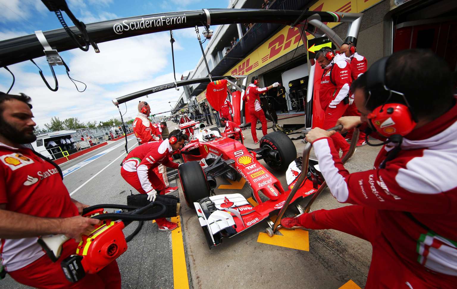 Vettel heads back into the garage during a morning practice session on June 10, 2016.