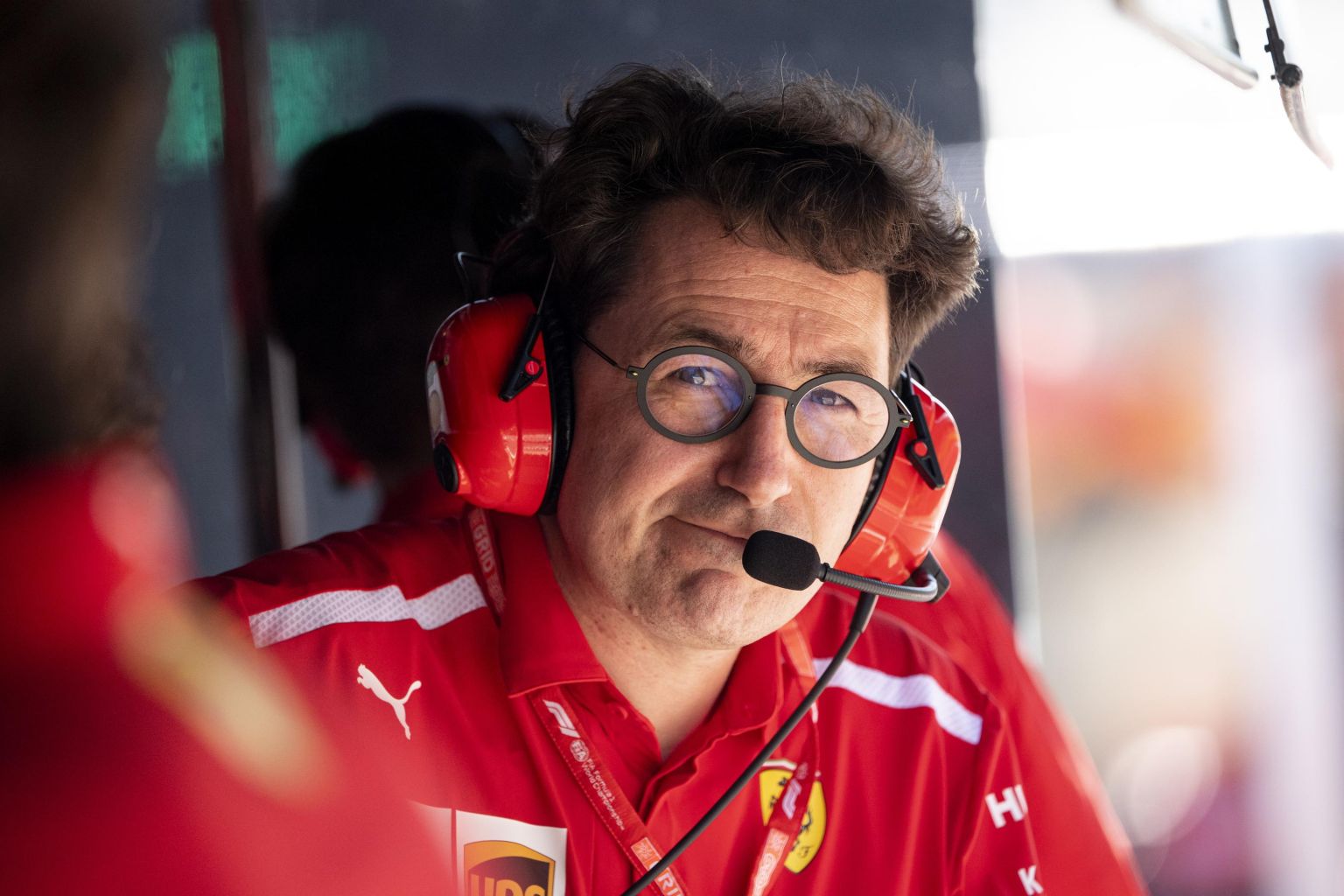 Scuderia Ferrari Formula 1 team principal Mattia Binotto at his team garage in the pit lane during the qualifying session of the Austrian Formula One GP at the Red Bull Ring circuit in Spielberg, Austria on June 29, 2019.