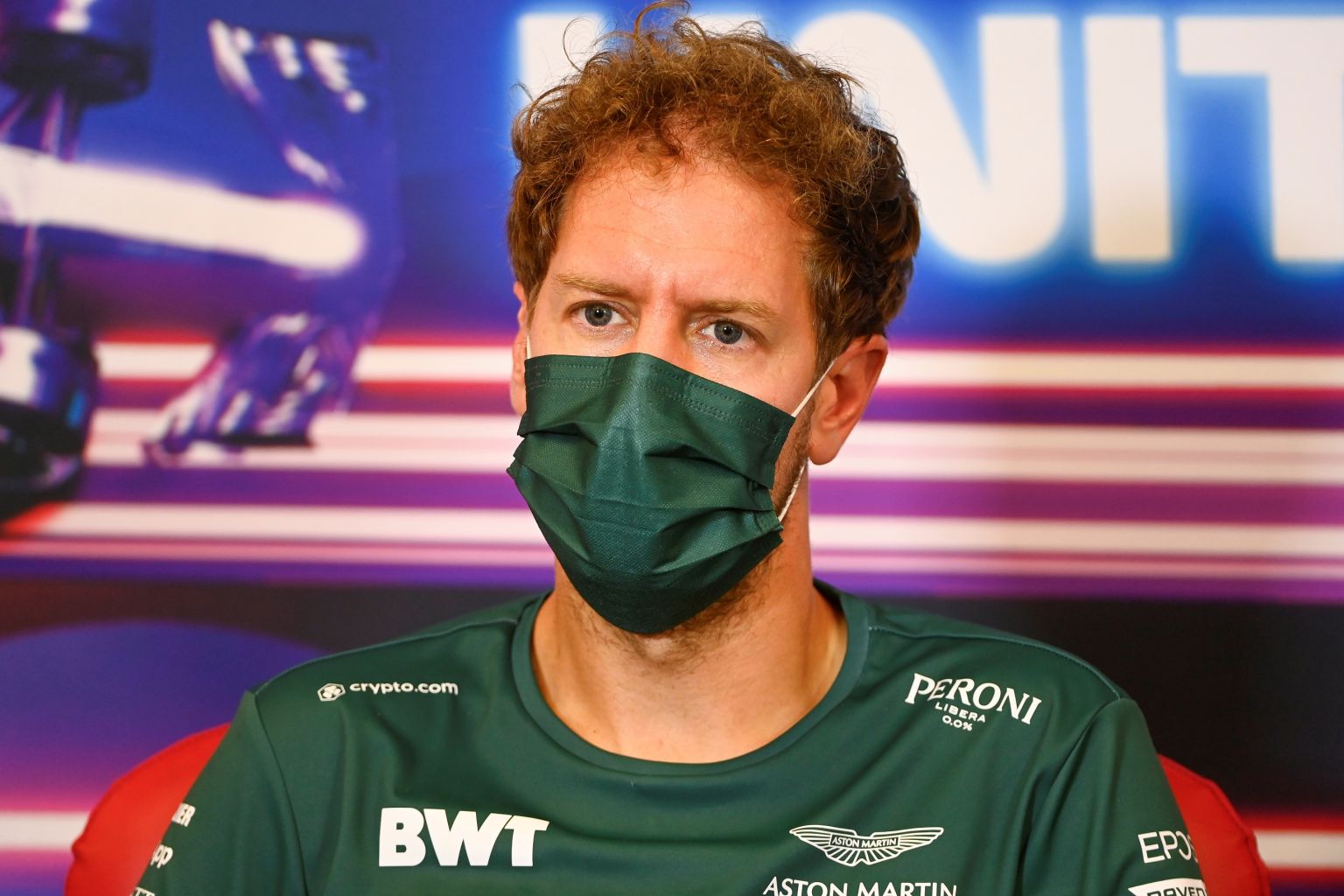 Aston Martin's Sebastian Vettel during a press conference ahead of the US grand prix.