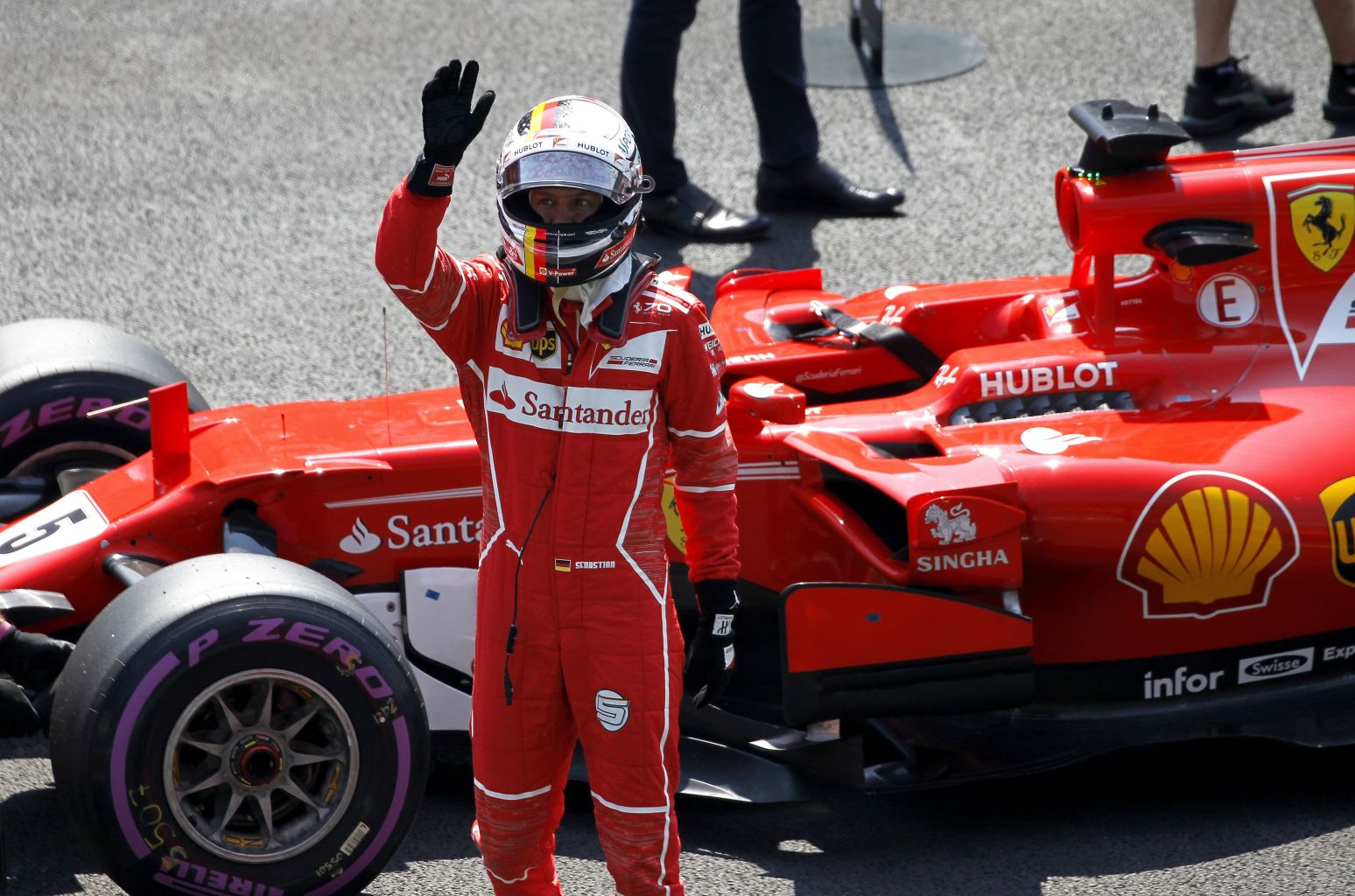 Vettel celebrates getting pole position for the Mexico Grand Prix.