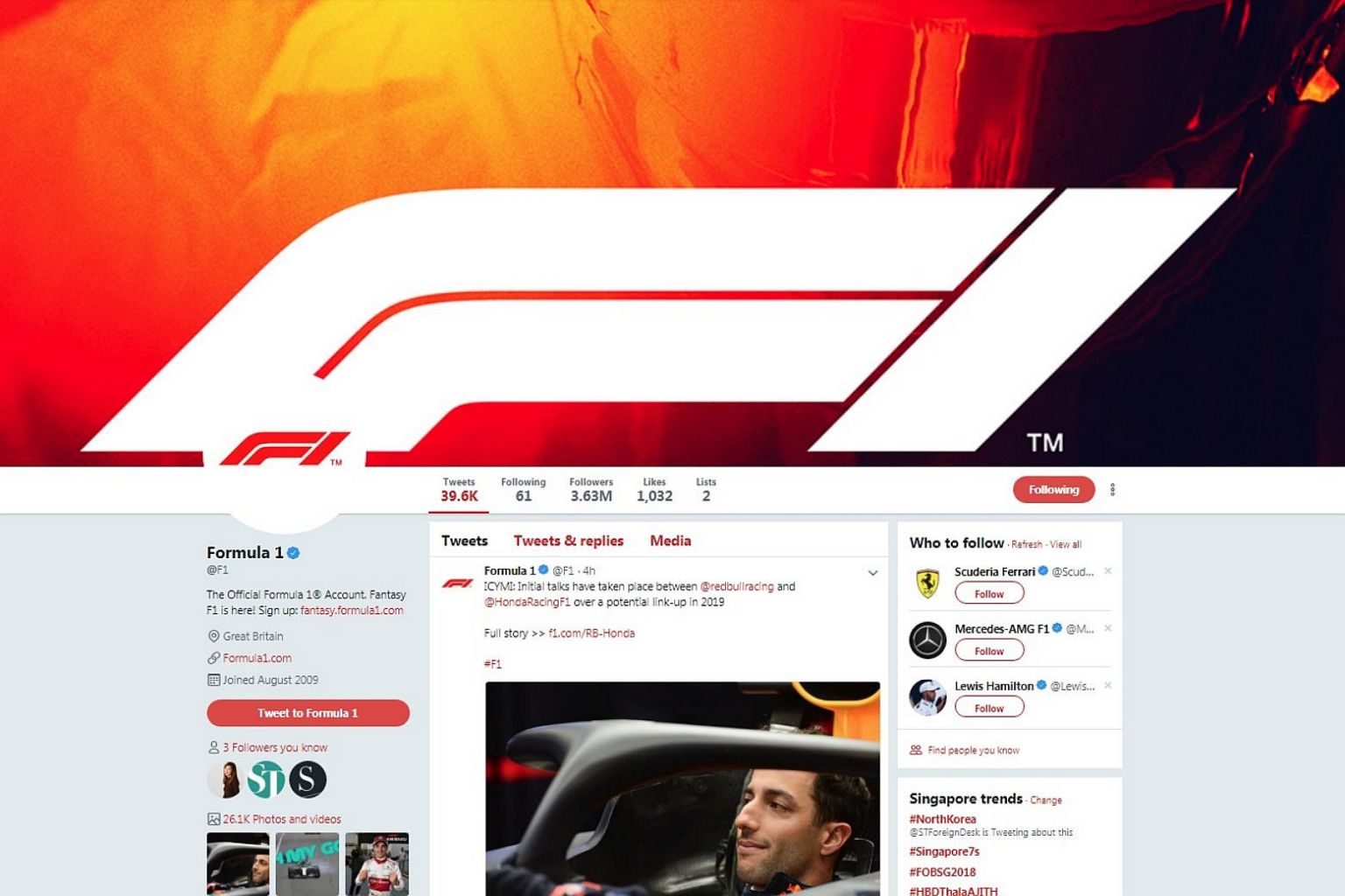 Formula One's @F1 feed currently has 3.63 million followers on Twitter.
