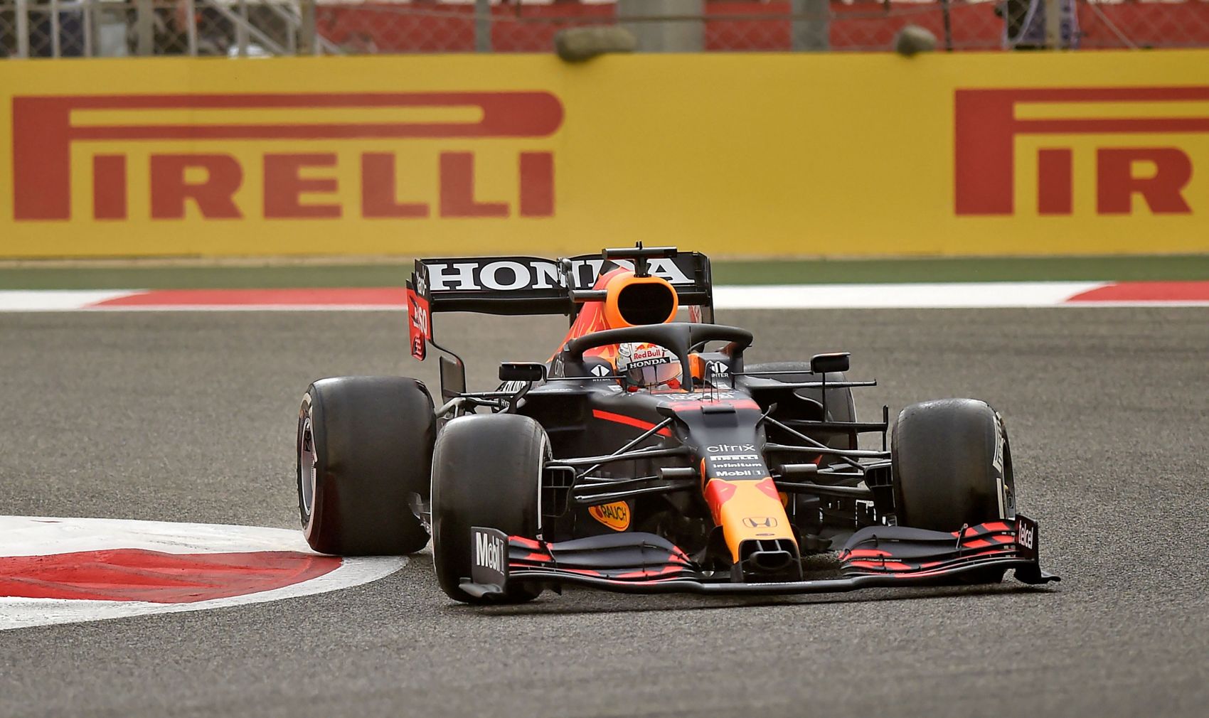 Red Bull's Max Verstappen drives during the afternoon session of the first day of pre-season testing in Bahrain.