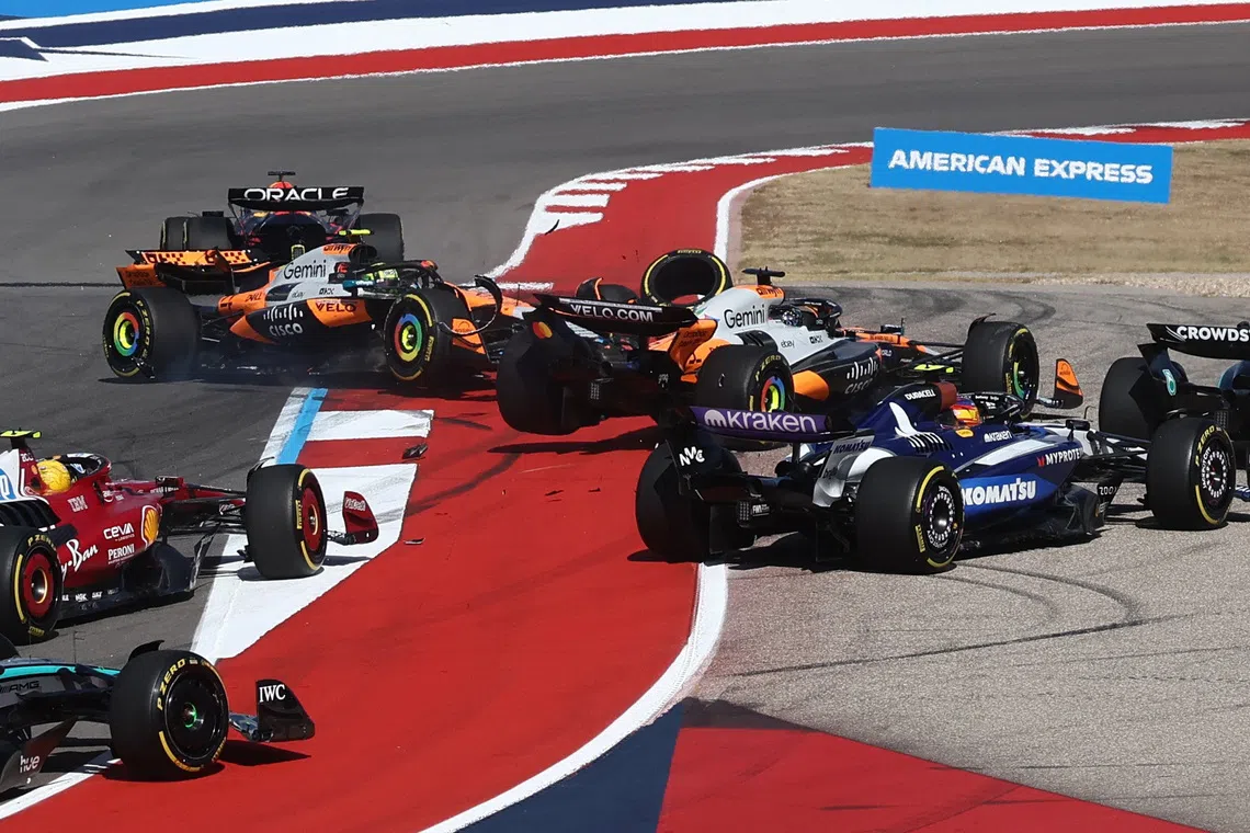 AUSTIN, Texas - Max Verstappen made the most of a first-corner collision between the two McLaren drivers to win Saturday’s sprint race at the US Grand Prix and reduce Oscar Piastri’s lead over him by eight points.