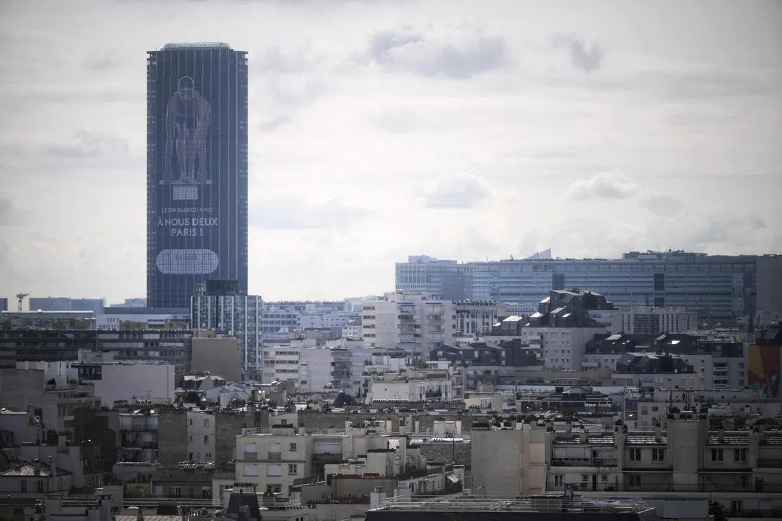 PARIS – Even on these gloomy Parisian mornings, one cannot miss the giant image of Leon Marchand on the starting blocks adorning the 210-metre skyscraper Tour Montparnasse with the words “A nous deux, Paris”, which loosely translates to “Bring it on, Paris”.