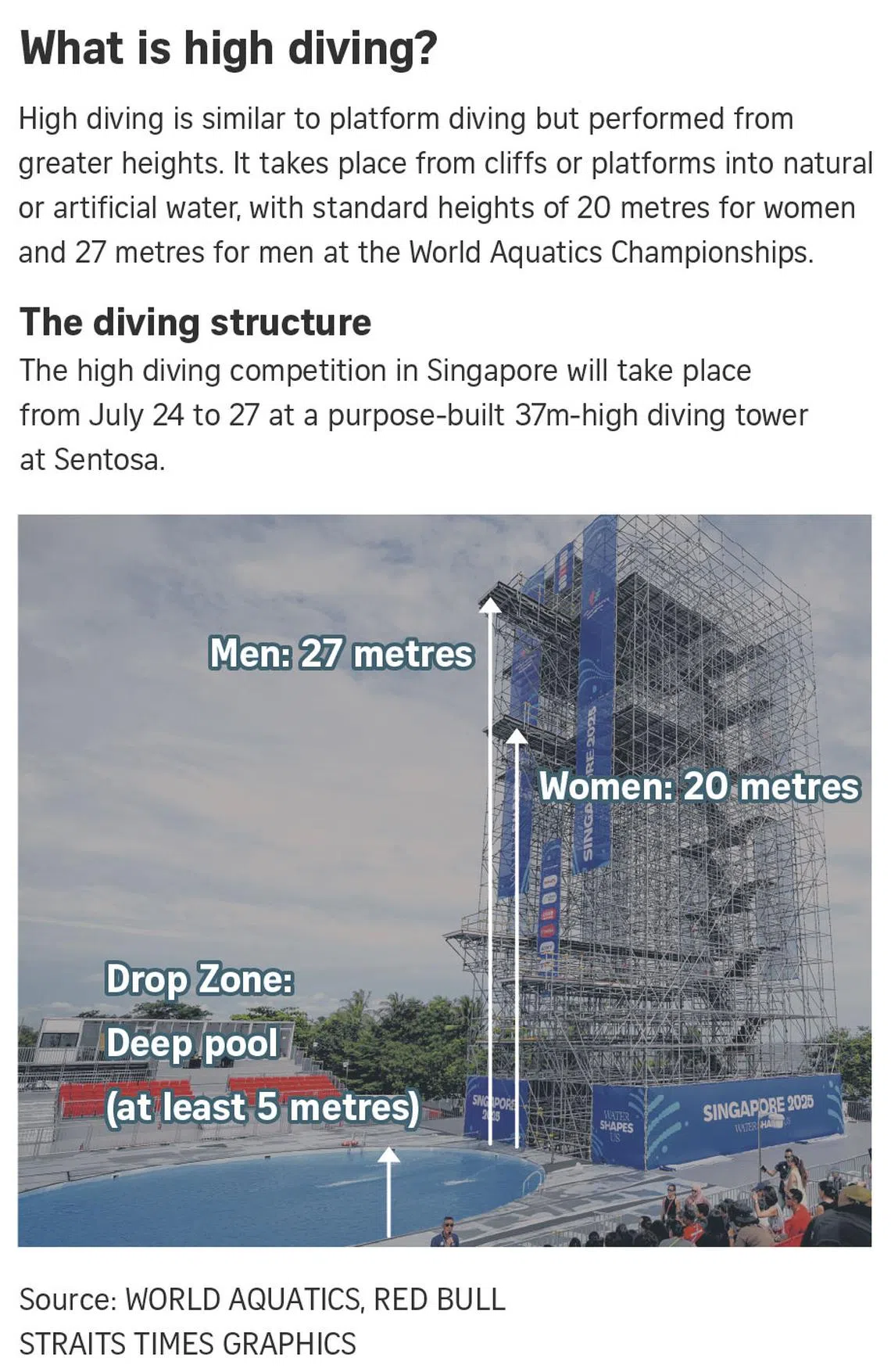 SINGAPORE – In the sport of high diving, where adrenaline junkies leap off eight-storey platforms while executing flips and spins, it is no surprise that some of its athletes hail from entertainment backgrounds.
