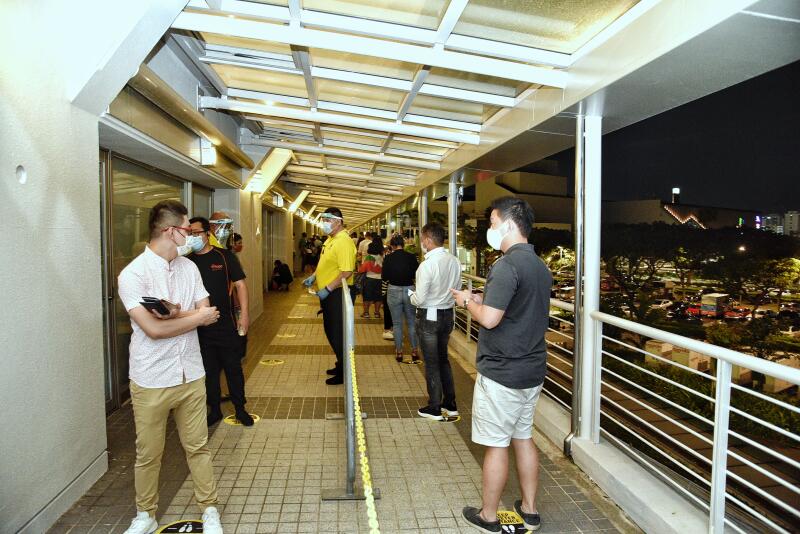 Fans queuing up at Entrance B to get into the Singapore Indoor Stadium on 29 October 2020 for the One Championship's Inside the Matrix mixed martial arts (MMA) event. These fans will be the first in Singapore to return to watching a live sport event since the coronavirus pandemic.