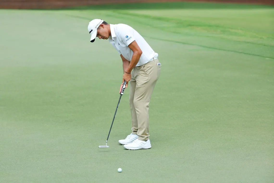 Scottie Scheffler lines up a putt on the 11th green during the first round of the Tour Championship.