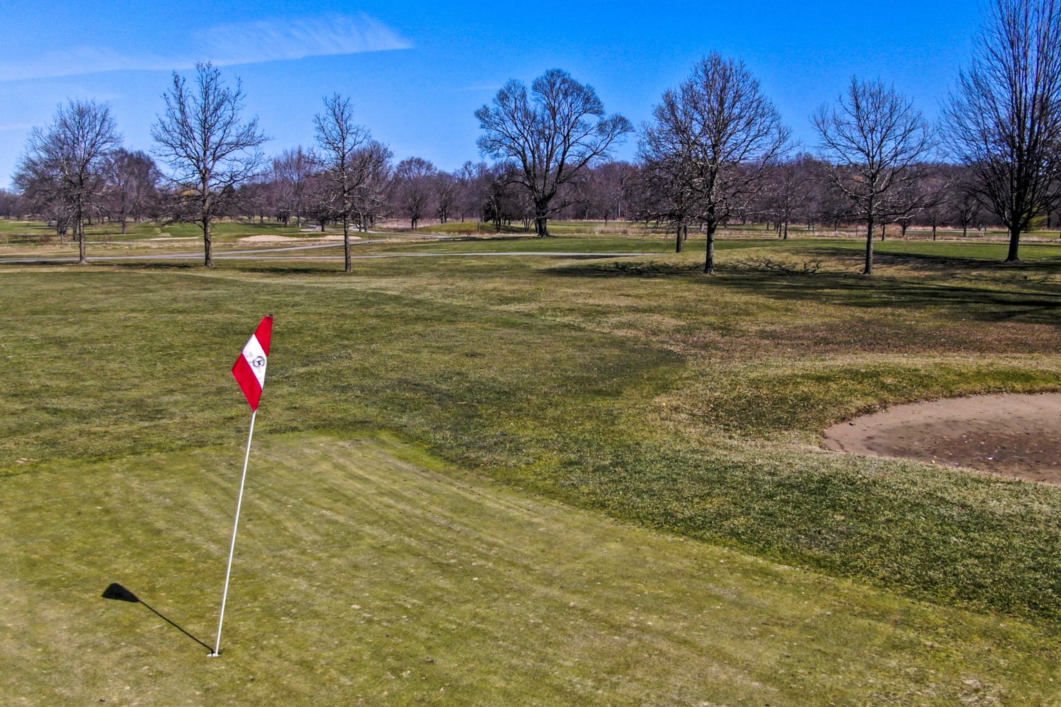 An aerial photo of the Deerpath Golf Course in Lake Forest, Illinois, on April 2, 2020.