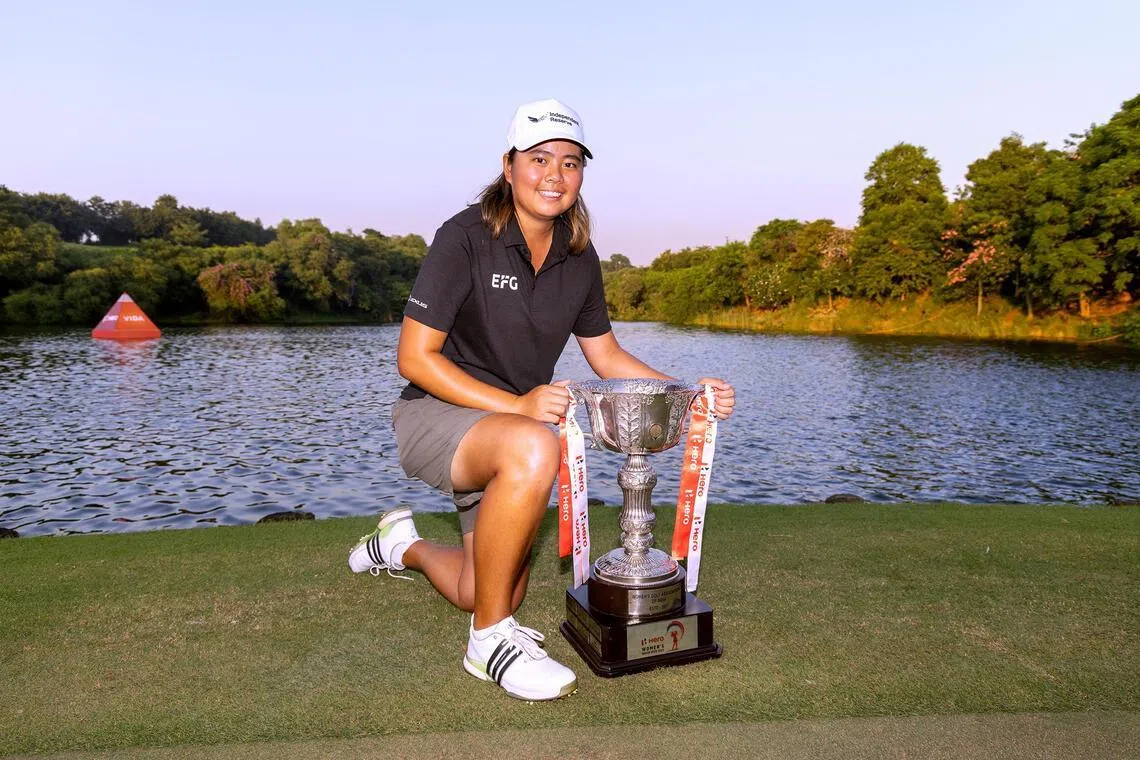Singaporean golfer Shannon Tan posing with her trophy at the Hero Women's Indian Open on Oct 12.
