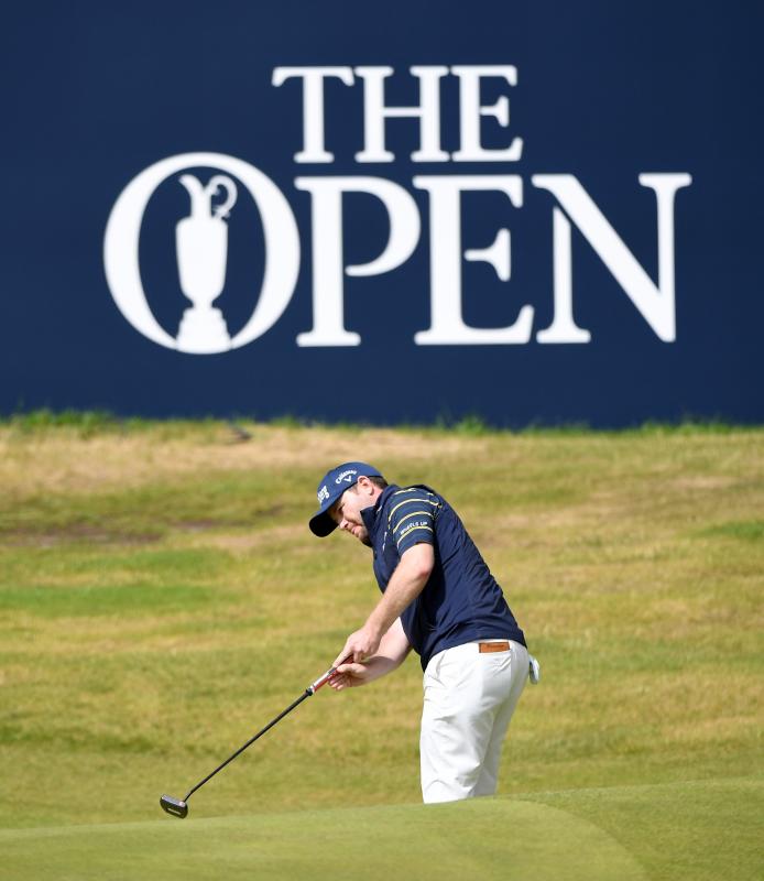 Branden Grace of South Africa on the 18th green during the third round of the British Open at Royal Birkdale.