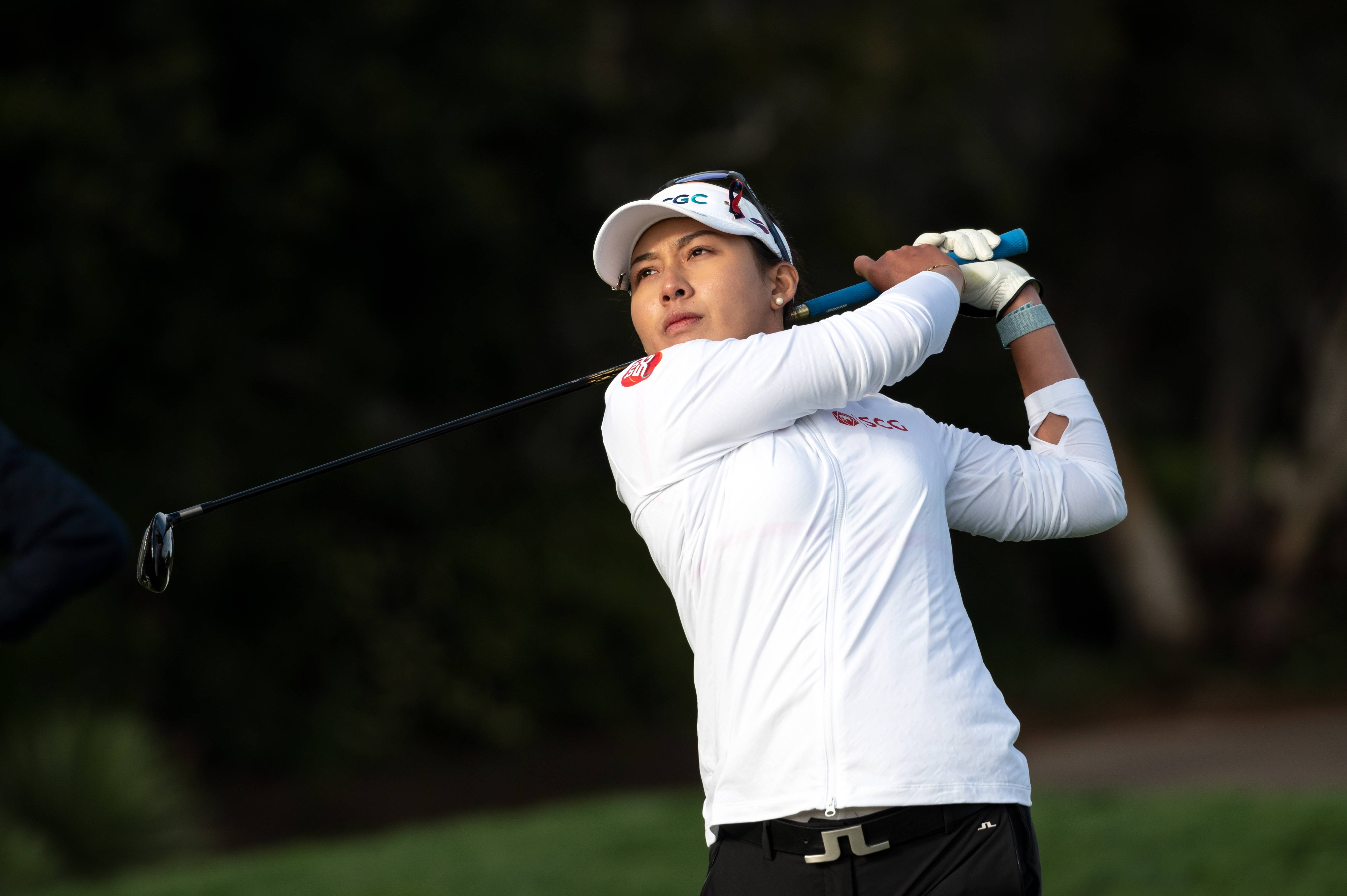Atthaya Thitikul tees off on the eighteenth tee box, on March 28, 2022.