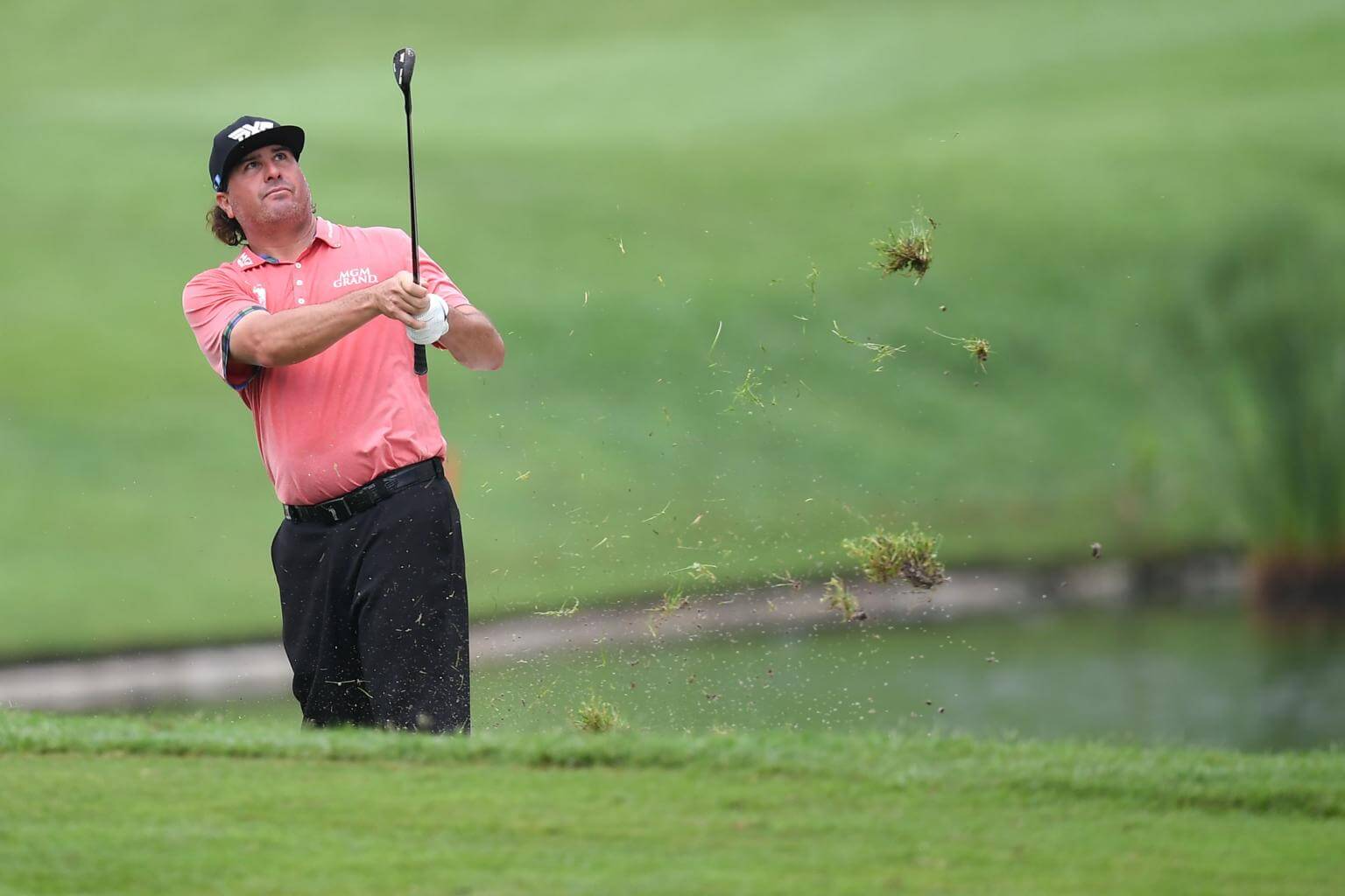Pat Perez plays a fairway shot on the 15th hole during the second round of the 2017 CIMB Classic golf tournament in Kuala Lumpur on Oct 13, 2017.