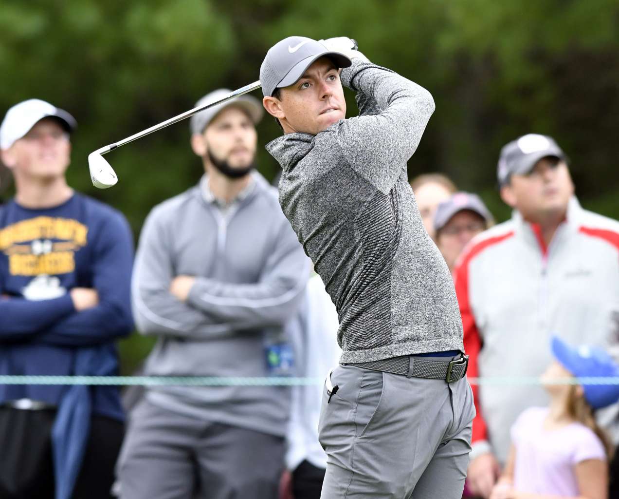 Rory McIlroy watches his tee shot on the 3rd hole during the final round of the 2016 Deutsche Bank Championship golf tournament in Boston.