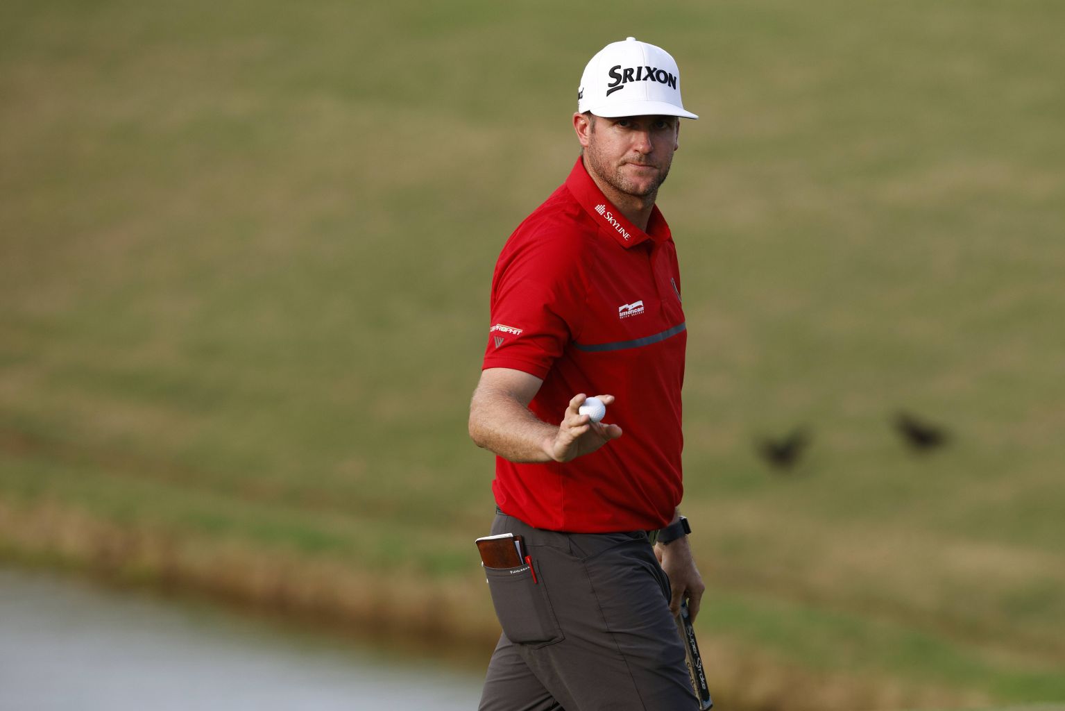 Pendrith waves after putting out on the 17th green during the third round of the Butterfield Bermuda Championship.