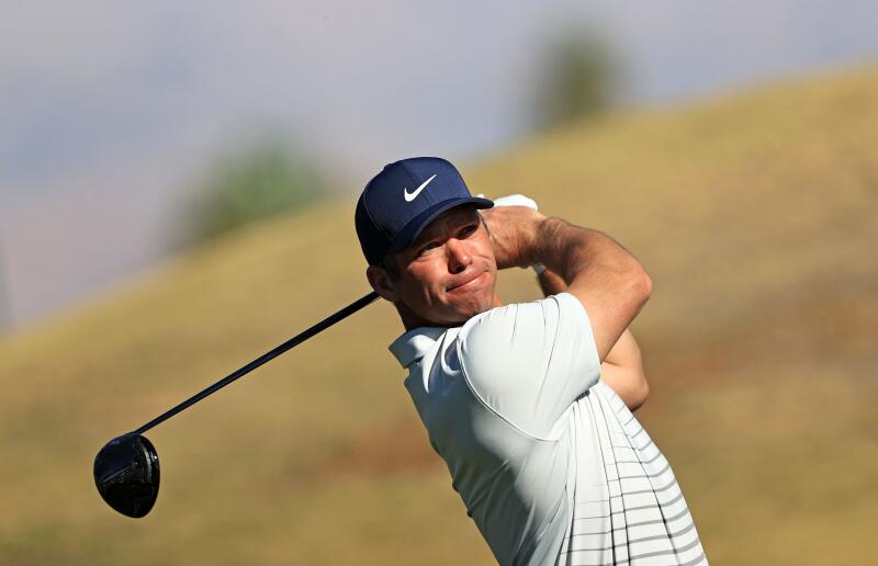 Paul Casey plays his shot from the eighth tee during The American Express tournament on Jan 24, 2021, in California.