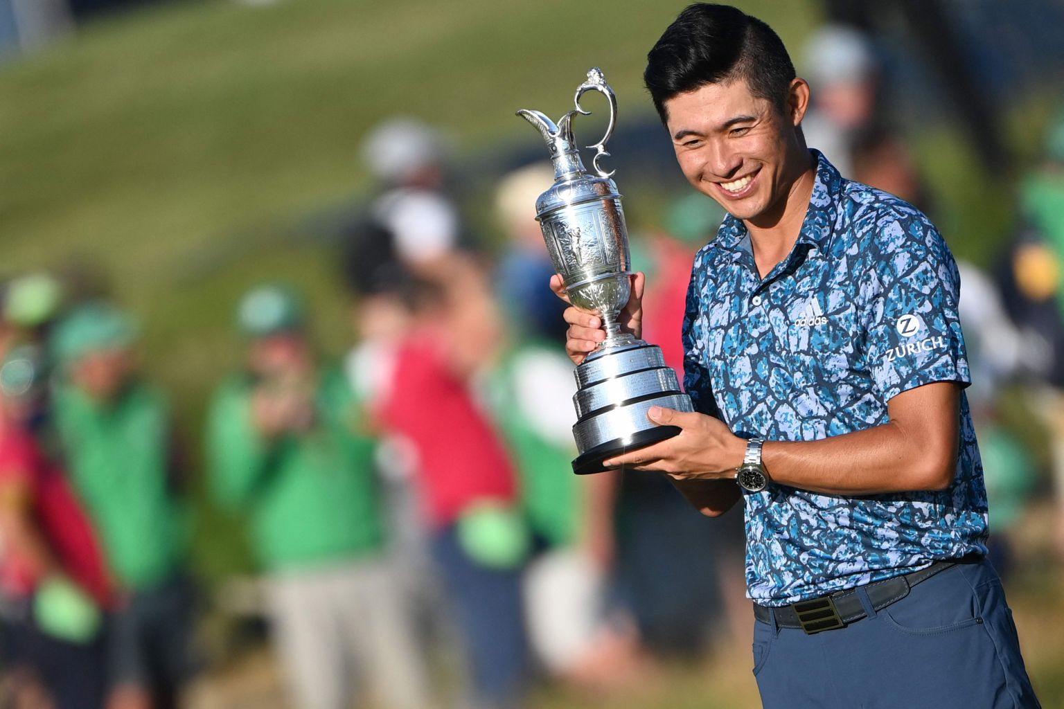 US golfer Collin Morikawa with the Claret Jug after winning the 149th British Open at Royal St George's, Sandwich on July 18, 2021.