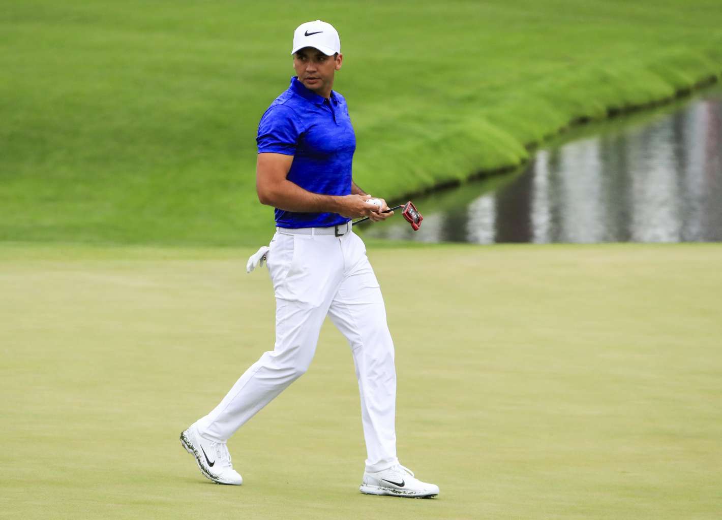 Jason Day of Australia walks across the sixteenth green during a practice round on the course at the 2017 Masters Tournament at the Augusta National Golf Club in Augusta, Georgia, US, April 3, 2017.