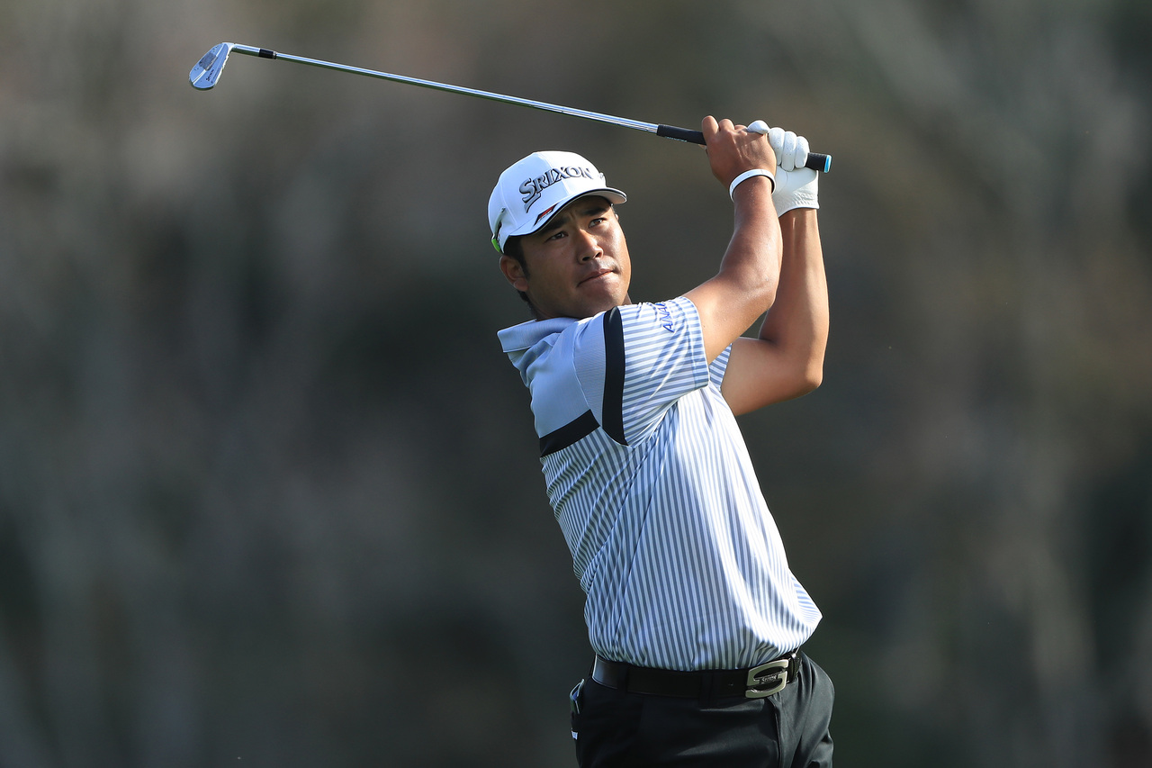 Hideki Matsuyama plays a shot on the 14th hole during the first round of the Players Championship in Ponte Vedra Beach, Florida, on March 12, 2020.