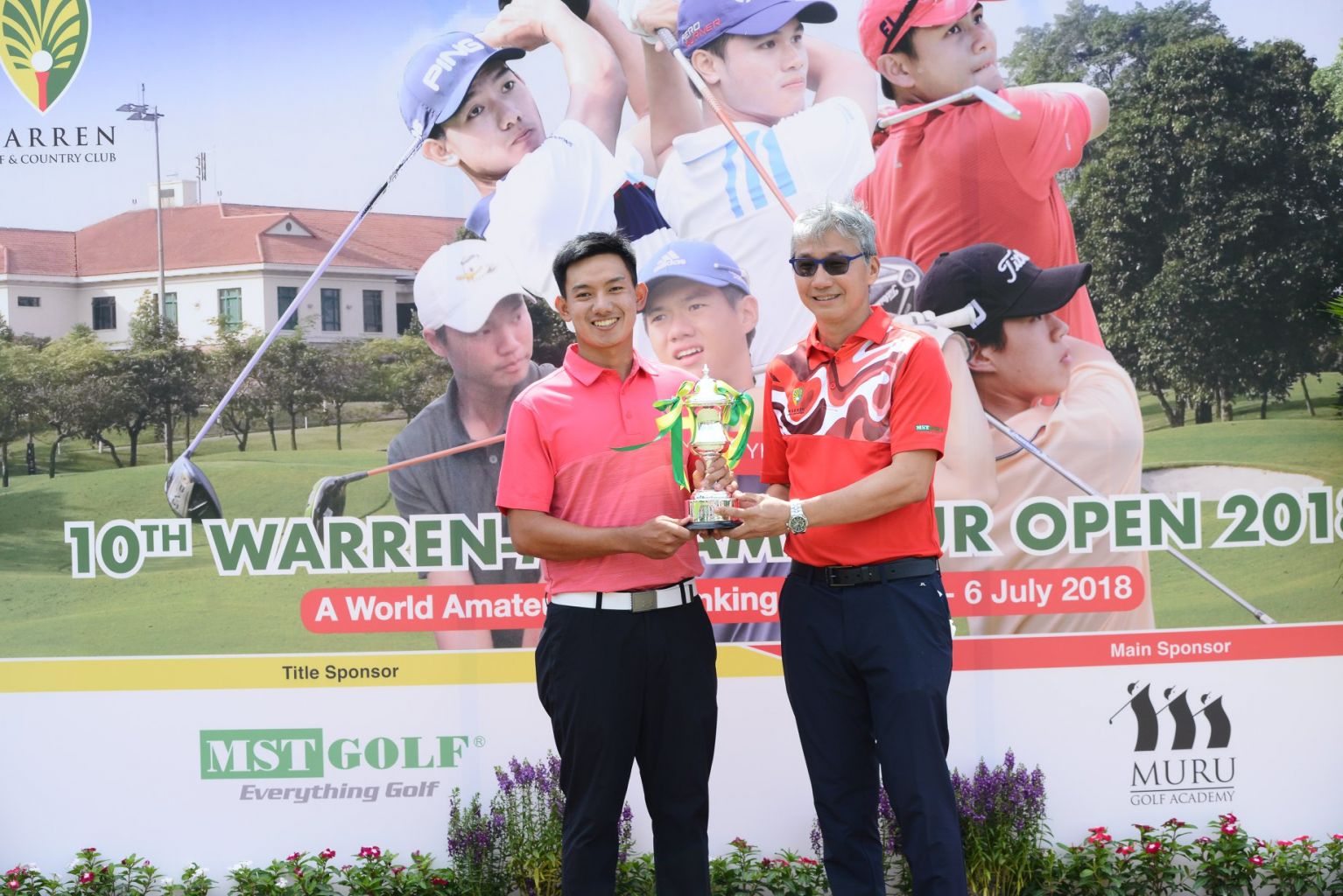 Men's Champion Jonathan Wijono of Indonesia celebrating with the 10th Warren Amateur Open trophy on July 6, 2018.
