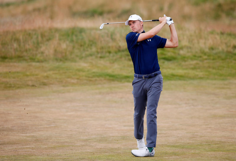 Jordan Spieth of the US in action during the practice round on July 17, 2018.