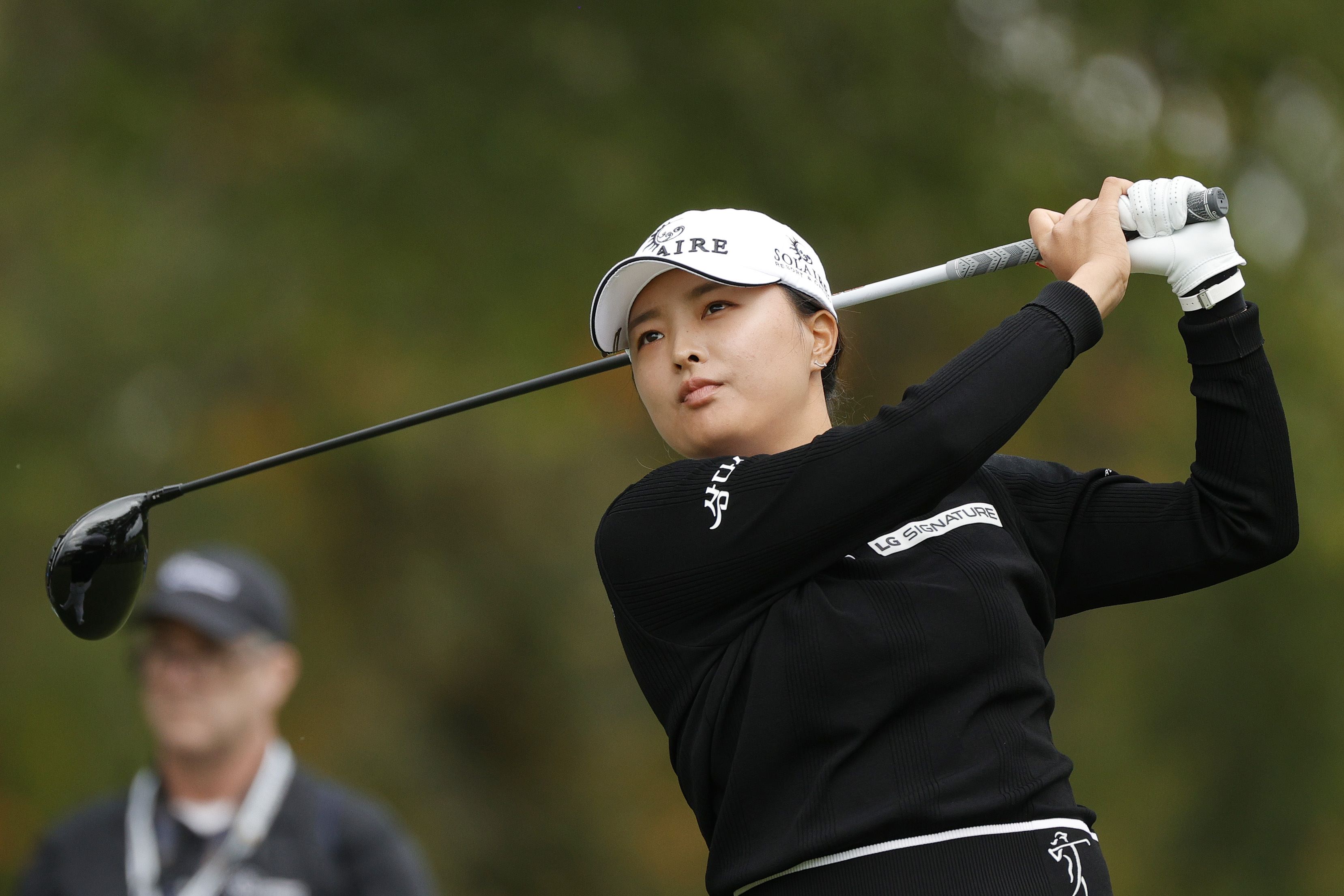 Ko Jin-young of South Korea during the third round of the Founders Cup in New Jersey on Oct 9, 2021.
