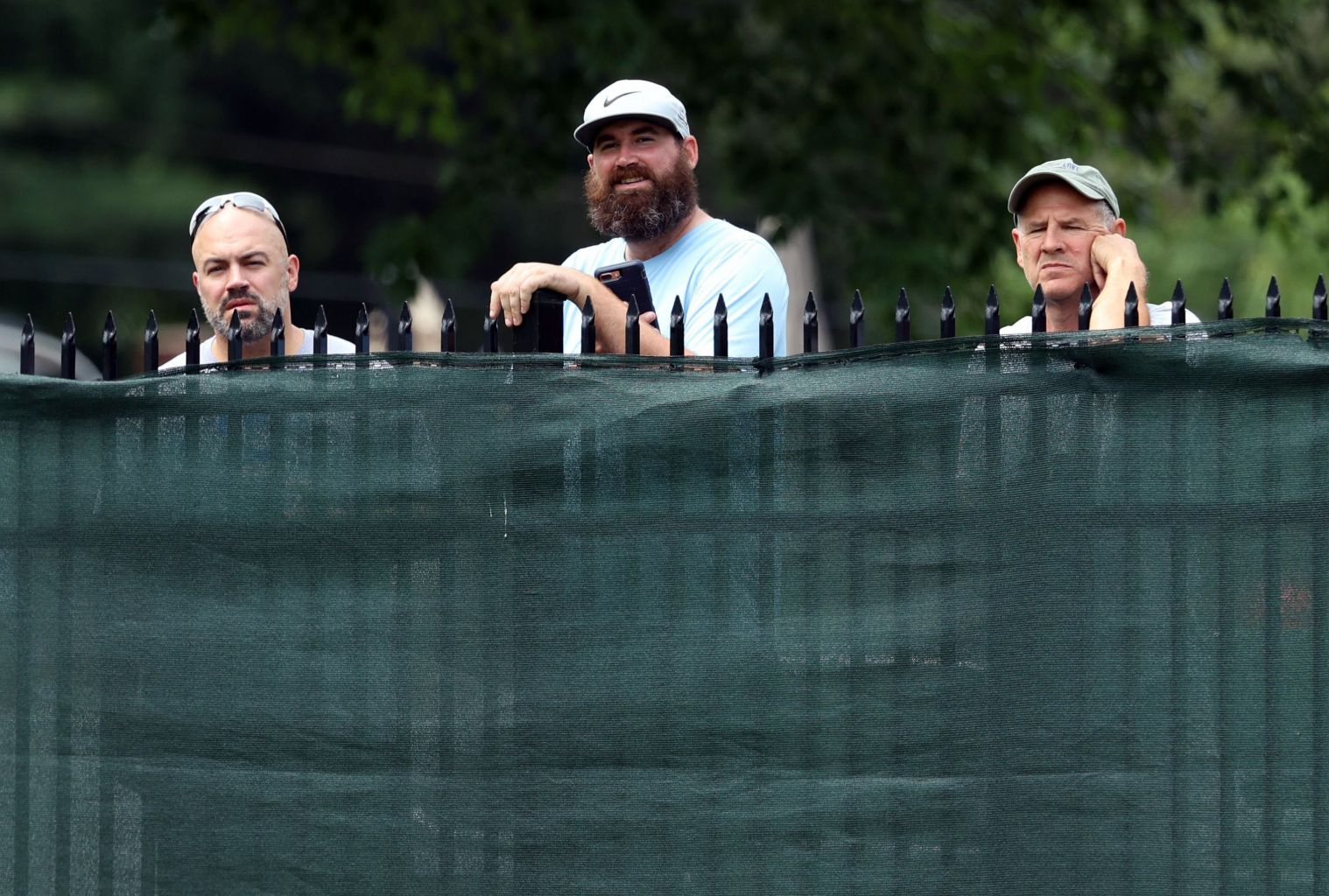 Spectators look on from behind a fence during the first round of the Travelers Championship.
