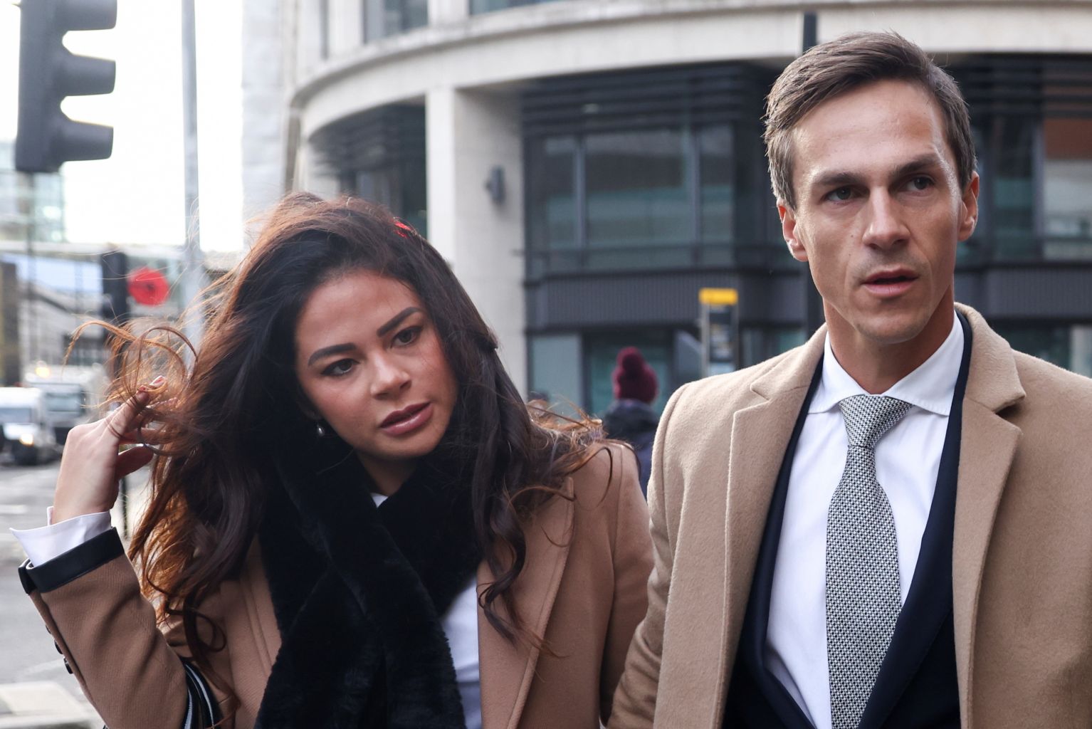 Danish golfer Thorbjorn Olesen and wife Lauren Zafer arrive at the court in London, on Dec 8, 2021.