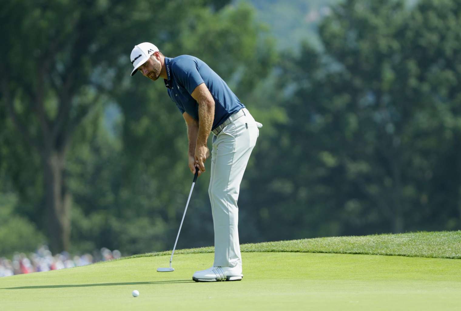 Dustin Johnson of the United States putts on the third hole during the final round of the US Open at Oakmont Country Club.