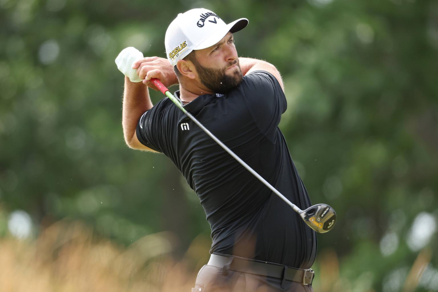 Jon Rahm plays his shot during the 122nd U.S. Open Championship in Massachusetts on June 16, 2022.