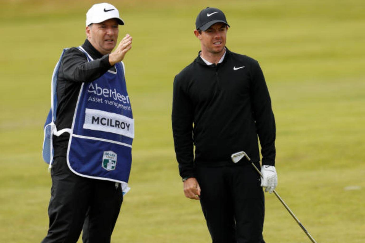 Northern Ireland's Rory McIlroy with his caddie during the first round on July 13, 2017.