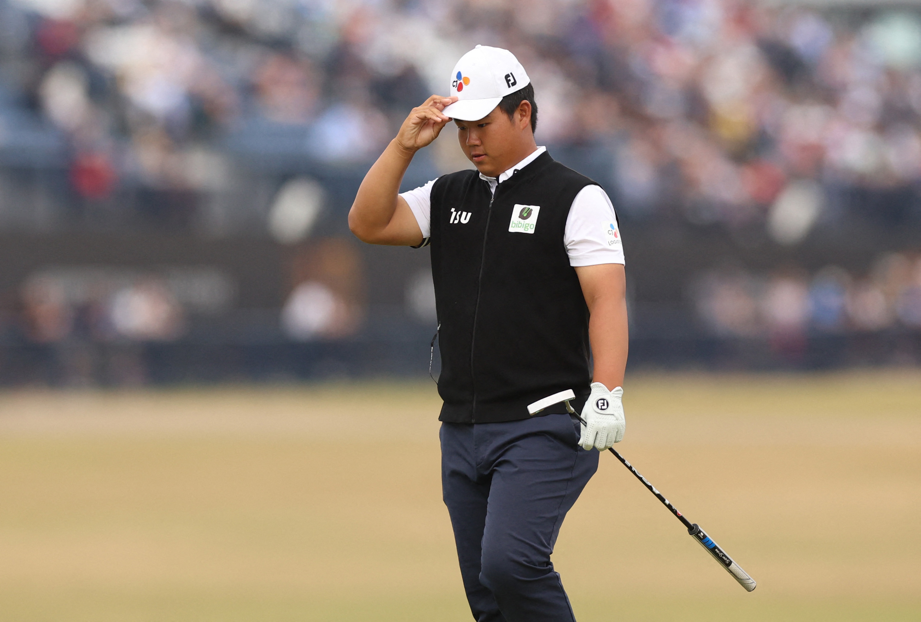 Kim Joo-hyung (above, at the British Open) had a nine-under par total of 131 to share the lead with Americans Brandon Wu and Ryan Moore.