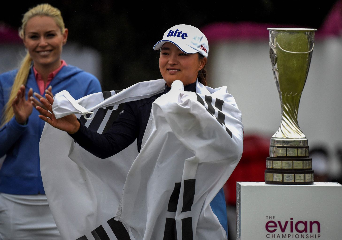 A 2019 photo shows Ko celebrating victory in the Evian golf Championships.
