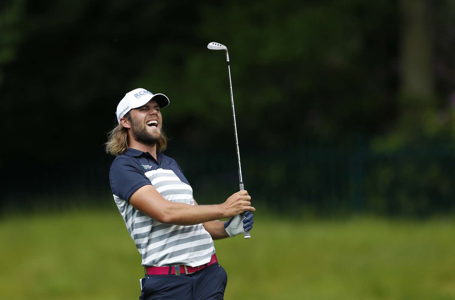 Sweden's Johan Carlsson reacts on the 18th during the first round.