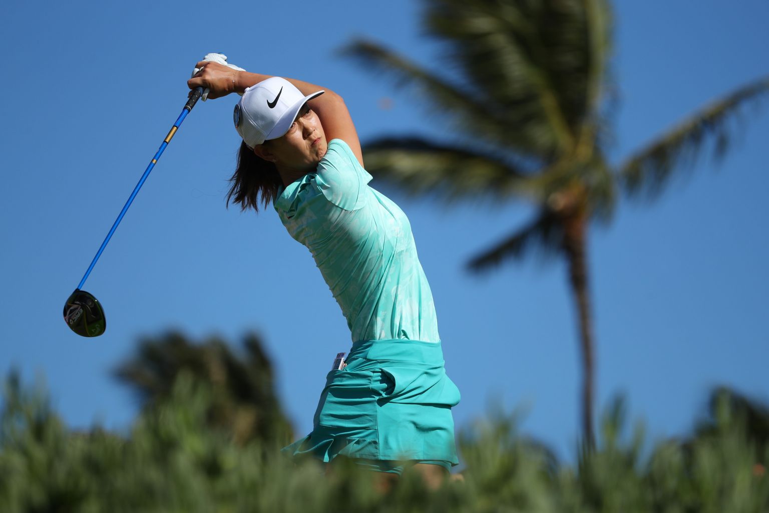 Wie watches her drive on the 13th hole during the second round of the 2019 LOTTE Championship.