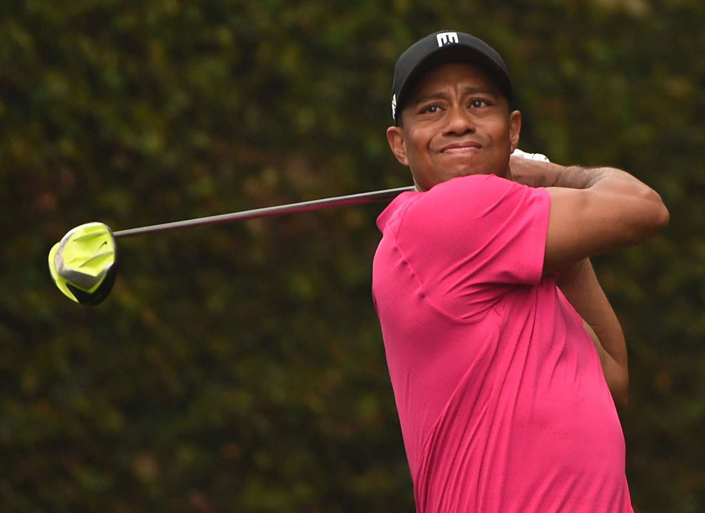 Tiger Woods hits a shot at Augusta National Golf Club during a practice round for the 2015 Masters.