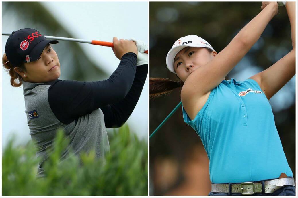 Ariya Jutanugarn of Thailand (left) is now in joint-lead with South Korea's Kim In Kyung (right).