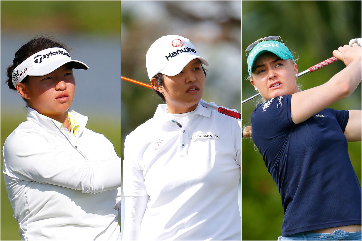 (From left) Megan Khang, Haru Nomura and Charley Hull during the Pure Silk Bahamas LPGA Classic.