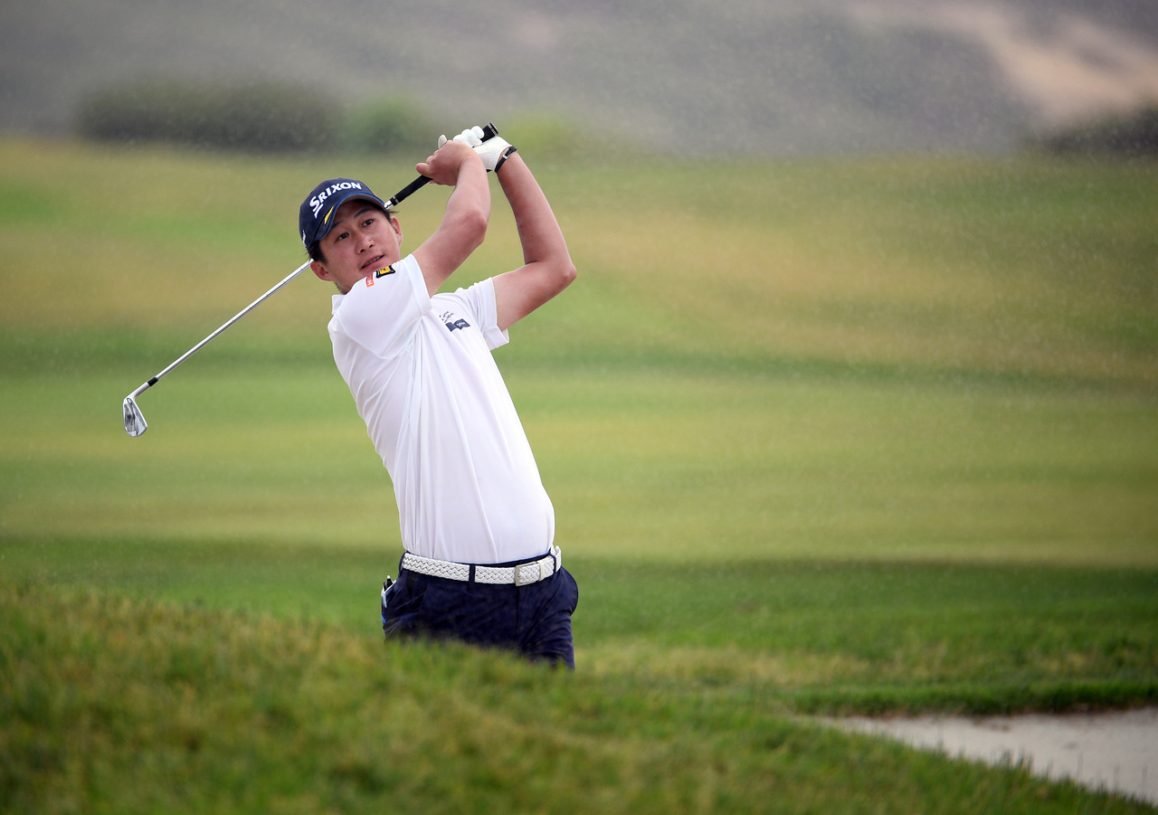 In this photo taken on June 18, 2021, Rikuya Hoshino plays a shot at the US Open golf tournament in San Diego, California.