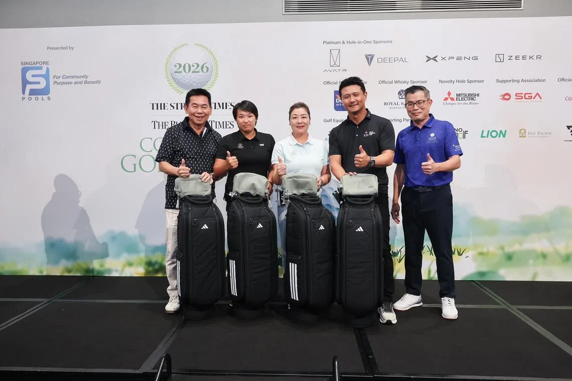 From left: Orchid Country Club’s captain Tan Ah Ee, Charissa Goh, Chelsea Chen and Allen Gong with Straits Times editor Jaime Ho during the awards ceremony for The Straits Times & Business Times Corporate Golf League at Sentosa Golf Club on April 10.