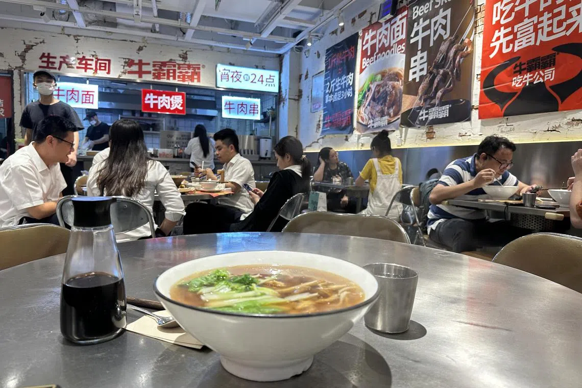 Niu Ba Ba offers comforting bowls of beef noodle soup for 30 yuan and free top-ups of noodles.