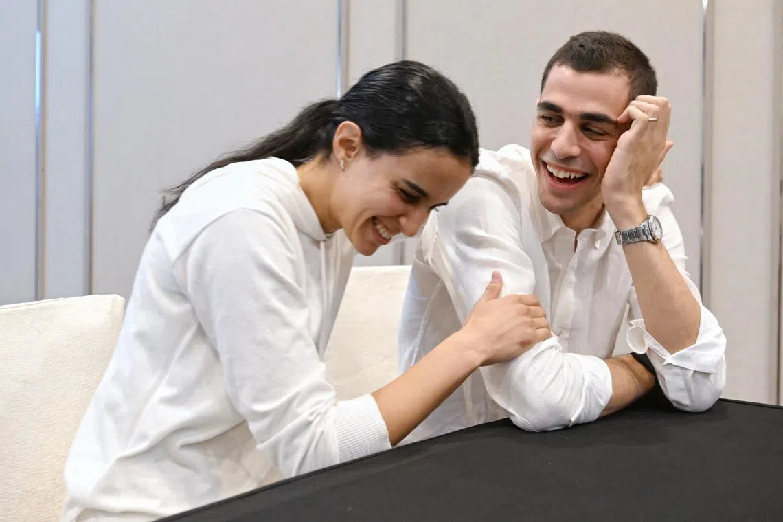 Egyptian power couple world No. 1 Ali Farag and sixth-ranked Nour El Tayeb after the press conference for the Singapore Squash Open, on Nov 13.