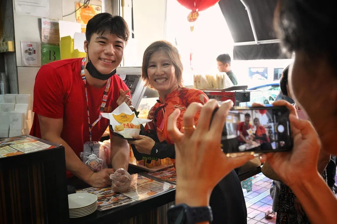 Noting that the queue was longer than usual, Madam Lee added: “I think they are here for both him and the curry puffs. You can see the queue, the crowd keeps streaming in.”