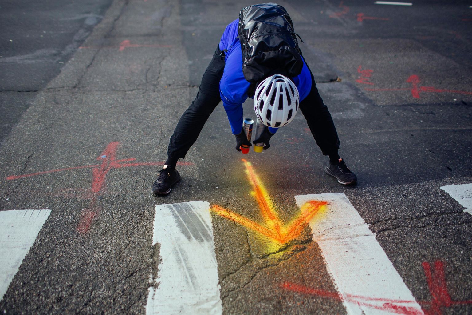 Ted Metellus, a director for event development with the New York Road Runners, marks the route for the New York City Marathon, on Oct 21, 2018.
