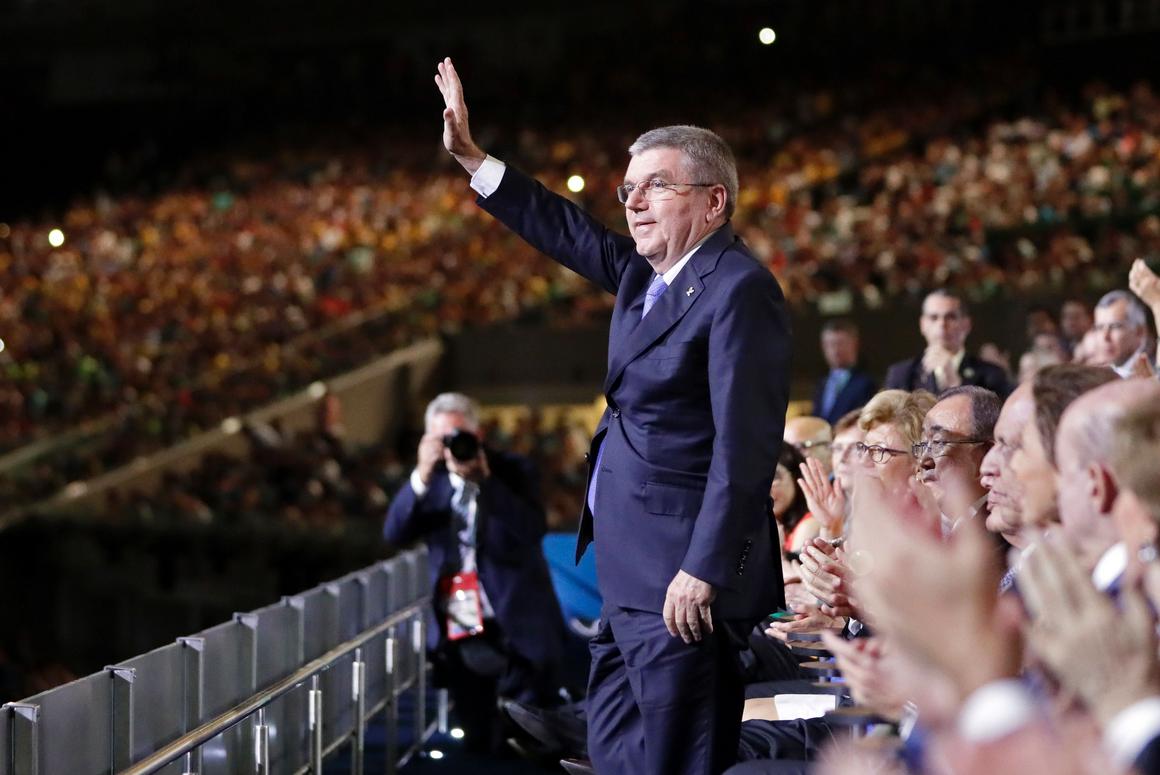 International Olympic Committee President Thomas Bach waves as he is introduced during the opening ceremony of the Rio 2016 Olympic Games.