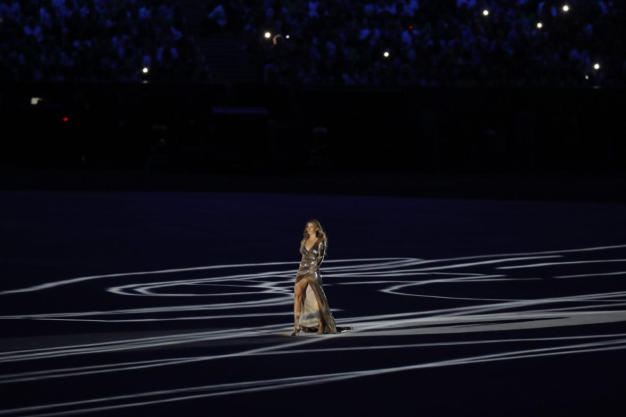 Brazilian model Gisele Bundchen arrives during the Opening Ceremony.